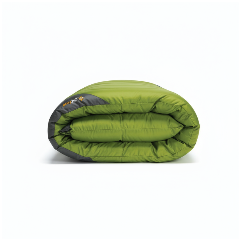 Velcro closure at top of the sleeping bag keeps the bag around you allowing you to control the temperature by adjusting the zip